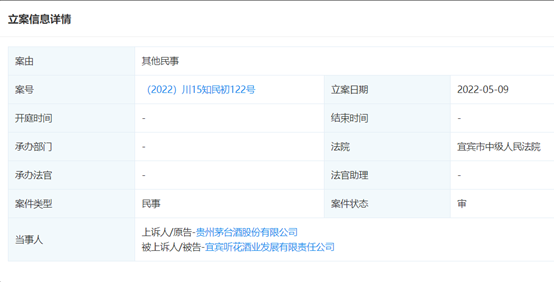 此前因为天价白酒赚足眼球的听花酒业近日又冲上微博热搜,起因是其被茅台、泸州老窖双双告上了法庭。 据企查查显示,近期,宜宾听花酒业发展有限公司被贵州茅台、泸州老窖两家酒业巨头告上法庭,这两起案件均已于5月9日立案。两家公司认为听花酒业涉嫌侵犯“茅台”和“国窖1573”的商标权和不正当竞争,分别索赔50万和30万。听花酒业就此回应称正在了解详细情况准备应诉。