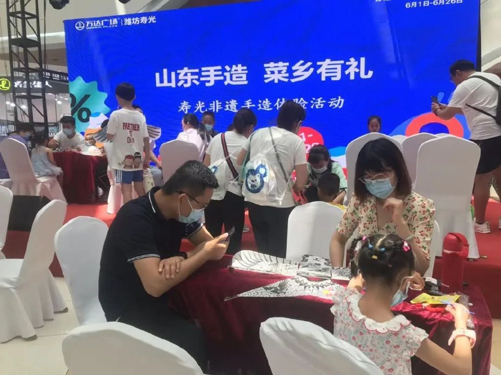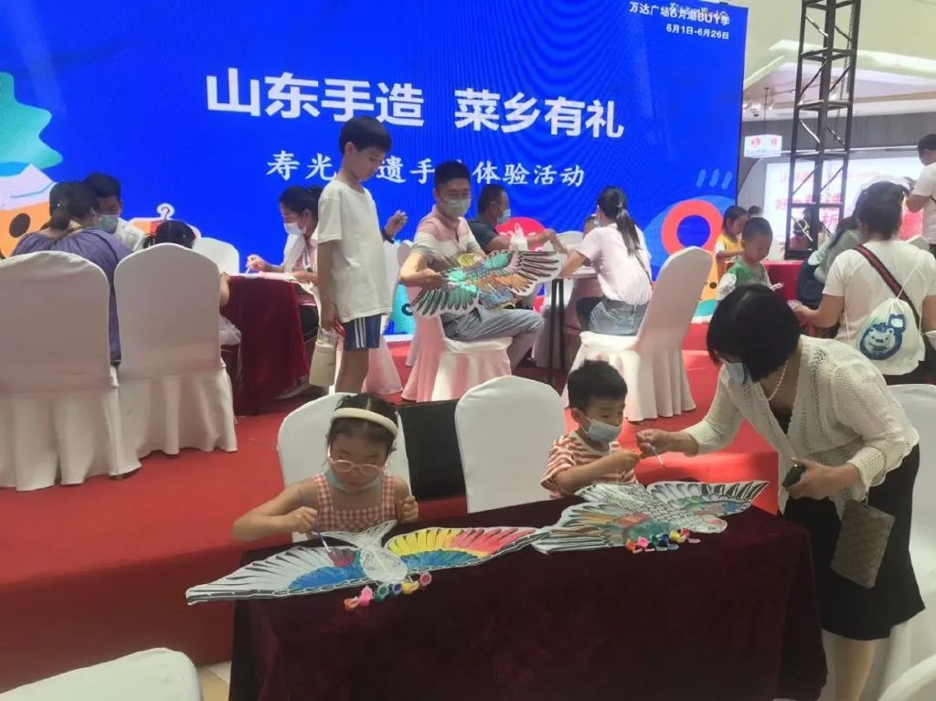 为庆祝2022年文化和自然遗产日,宣传“山东手造”品牌,端午期间,寿光市文旅局在万达广场举办了了“一元体验非遗手造”现场手工教学活动。