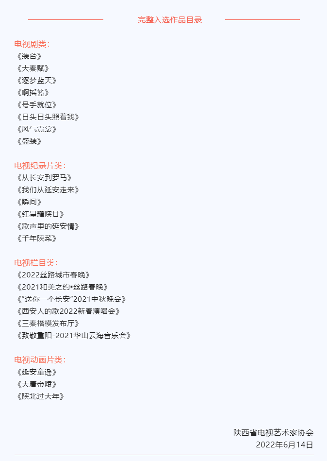 西安广播电视台三部作品角逐第31届中国电视金鹰奖 近日,西安广播电视台报送的电视纪录片《从长安到罗马》、《红星耀陕甘》、电视栏目《2022丝路城市春晚》在第31届中国电视金鹰奖陕西省初评中脱颖而出,将同其他20部入选作品一起代表陕西省参加第31届中国电视金鹰奖的角逐。 《从长安到罗马》 ——开创中意国家级媒体和地方广播电视台合作先河 百集4K微纪录片《从长安到罗马》以中国故事的国际表达、中国价值的全球视野为创作理念。首次采用“双城记”平行视角,中意两国知名专家学者带着对经贸、文化、社会、音乐、美术、建筑、城市等思考,走进古丝绸之路的起点和终点,深入西安和罗马两个城市,带领观众一同感受来自不同地域不同文明带给心灵和思想的强烈冲击,诠释以和平合作、开放包容、互学互鉴、互利共赢为核心的“丝路精神”。 2021年2月,在中央广播电视总台国际视频通讯社线上举办的“第十届全球视频媒体论坛”中,中宣部副部长、中央广播电视总台台长慎海雄对中央广播电视总台策划,中国国际电视总公司、西安广播电视台等联合出品的百集4K微纪录片《从长安到罗马》等一批加强与国际媒体合作的文化类节目给予高度评价。 2021年5月,由中国广播电视电影报刊协会、光明日报文艺部、中广联合会纪录片委员会、纪录中国理事会联合组织的“2020年度中国最具影响力十大纪录片系列推优活动”发布仪式在苏州黎里古镇举行。《从长安到罗马》第二季获2020年度中国最具影响力十大纪录片。 2021年12月,中央宣传部对外推广局、国家广播电视总局宣传司公布的2021年第一、二季度优秀对外传播纪录片,共推选出30部优秀作品。《从长安到罗马》上榜,获中国对外传播优秀纪录片奖项。 该纪录片先后在中央广播电视总台科教频道、综合频道、纪录片频道和总台新媒体平台、国内主要视频网站、意大利国家电视台网站和Youtube平台上线,并在意大利、美国、英国、南非、荷兰、阿联酋、柬埔寨、印度、马来西亚等多个境外国家电视台播映。累计收看量超3亿人次。引起了强烈反响和高度评价。 《2022丝路城市春晚》 ——“1+N”云上晚会新模式打造丝路文化盛宴 2022《丝路城市春晚》以欢乐、祥和、温暖为主基调,通过展示丝路文化喜迎新春佳节、同心战胜疫情长安依旧“常安”等内容,突出“我的丝路我的年,我的西安我的城”的主题。晚会分为欢乐团聚、丝路文化、抗疫奋进、温暖长安四个篇章。为在西安就地过年的外来务工者和大学生、隔离群众、广大市民提供精彩的文化产品,陪伴大家共度一个温暖、温情、温馨、团圆的新春佳节,同时也给海内外受众展现不一样的西安风情、不一样的丝路文化。 本届晚会最大亮点是荟萃了中外一带一路沿线地区以及历史文化名城风采,西安主会场+各城市分会场的“1+N”云上晚会模式,“线上演出+名人和观众互动+全媒体传播”的结构方式在众多省市的春节晚会中独树一帜、别具风格,营造了丝路一家亲、欢乐迎新春的氛围。 陕西籍演员闫妮、凯丽、孙浩、苗阜,周恩来扮演者刘劲等演员、歌手,中央、省市电视台主持人和国外城市台主持人,参加冬奥会的陕西籍运动员教练员,西迁老教授,西安航天人,以及美国、英国、法国、哈萨克斯坦、吉尔吉斯斯坦、印度等国际友人和留学生代表等给丝路城市春晚的观众和网友送来了云上祝福。 “二十城连动闹春晚”“中外人士齐声贺新春”,2022《丝路城市春晚》致力创新、创意、创优,与西安市文旅局、西安曲江新区管委会、西安演艺集团深度合作,用文化大展演、民族大汇聚、丝路大融合的精彩演绎奉献了一台丝路文化盛宴,打造了西安广电融媒文化品牌。 《丝路城市春晚》在“原点新闻”“学习强国西安学习平台”“西安网”“西安网络广播电视台”等新媒体矩阵,以及爱奇艺、新浪、央视频、央视频移动网、头条、百度、触电新闻、新浪微博、视频号等国内各大新媒体平台直播播出,点击量8000余万。由全国城市新闻网媒联盟共同参与的《丝路城市春晚》全国网媒大联播同步上线,直播在线收看人数1.2亿,总点击量近4亿。《丝路城市春晚》被中国城市新闻网媒联盟全网转发,上海、重庆、天津、广州、深圳等全国各重点城市新闻门户网站推送稿件累计点击量1.6亿。新华网、人民网等央媒平台纷纷给与好评和点赞。 《红星耀陕甘》 ——全国庆祝建党100周年重大革命历史题材纪录片 《红星耀陕甘》重点展现了中国工农红军第二十六军从创立到建成陕甘革命根据地波澜壮阔的历史画卷。《红星耀陕甘》联合摄制组跨越陕甘两省,纵横22个市县区,行程15000余公里,寻访拍摄重要历史点位60余处,采访重要历史事件当事人、见证人100余人。以精准的文字解说、丰富的镜头画面,详实的影像资料,全景式展现中国工农红军西北红军从创立到建成陕甘革命根据地波澜壮阔的历史画卷;生动再现了刘志丹、谢子长、习仲勋等老一辈无产阶级革命家的丰功伟绩。填补了展示西北红军征战史和“两点一存”重要历史地位纪录片作品的空白。 2021年6月,该纪录片被国家广电总局确定为庆祝建党100周年重点纪录片作品。 2021年11月,该纪录片在“人民日报”“人民视频”“新华网客户端”“央视频”“央视频移动网”“学习强国”“